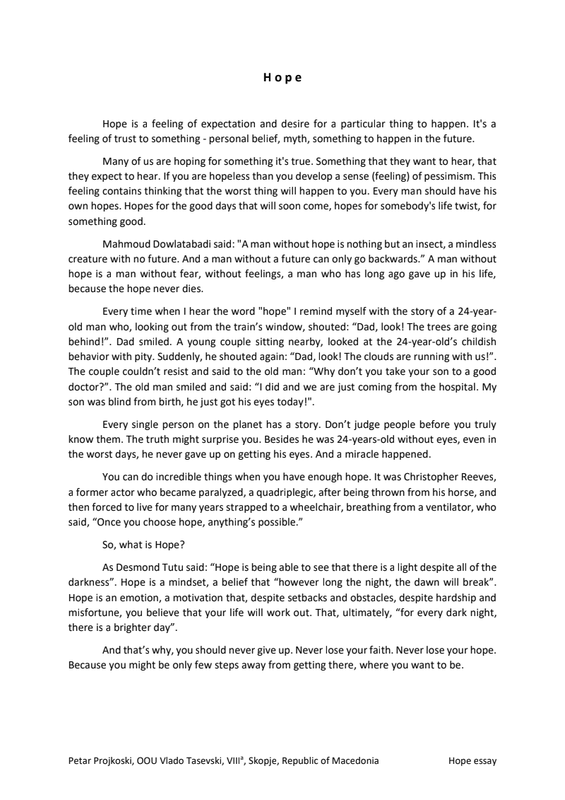 Petar Projkoski - Hope Essay